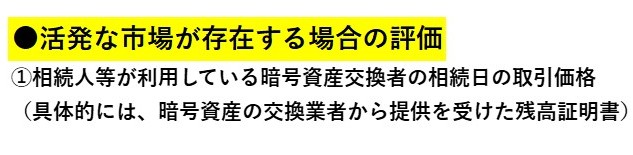 活発な市場が存在するということは、一定の相場が成立し、暗号資産の客観的な市場価格が明らかになっているものと解されます。