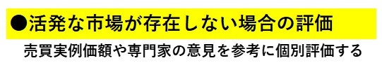 そのため、評価通達に定める評価方法を参考にし「活発な市場が存在するか」で分けて評価します。