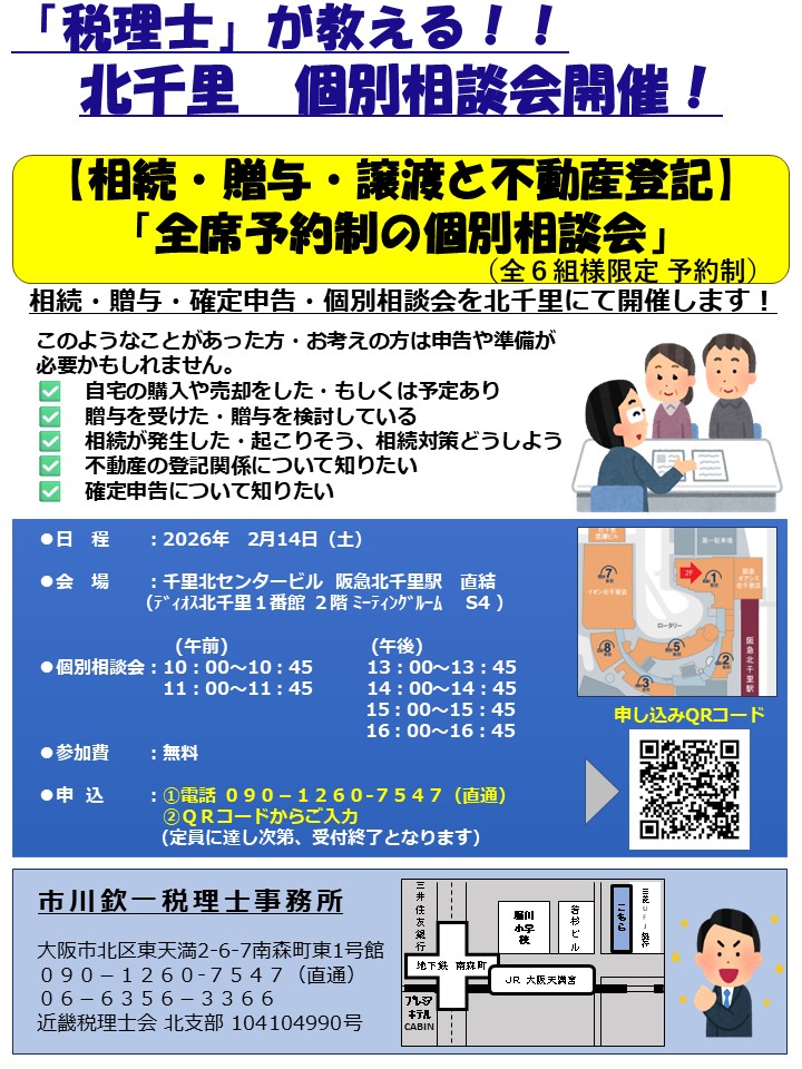 「相続・贈与・譲渡と不動産 全席予約制の個別相談会」を北千里ディオスにて実施しました。